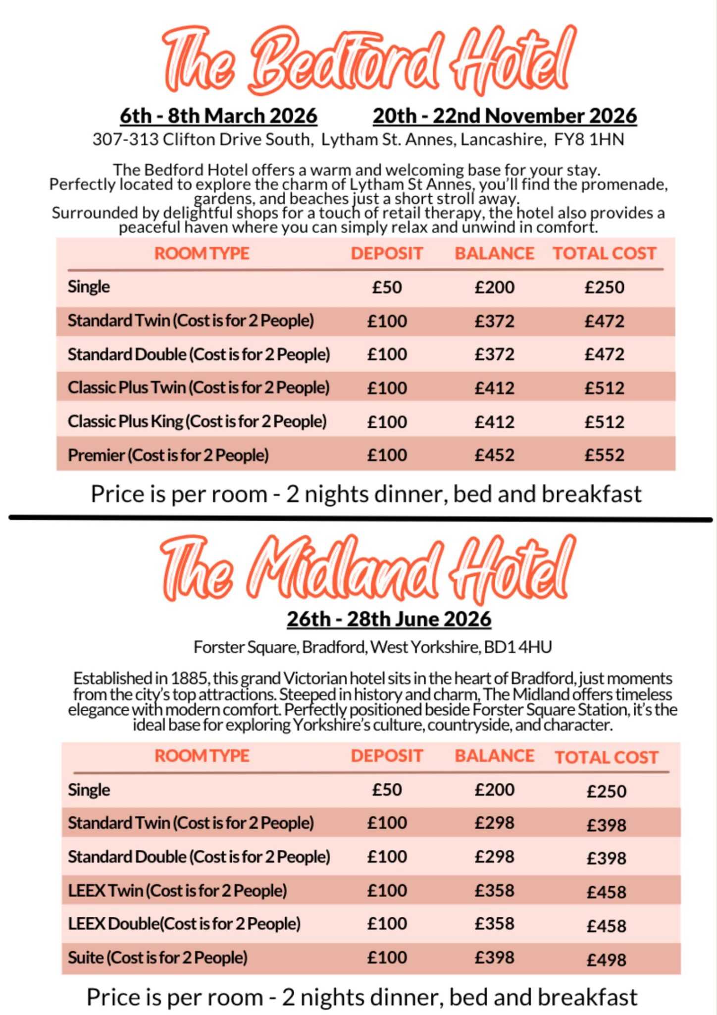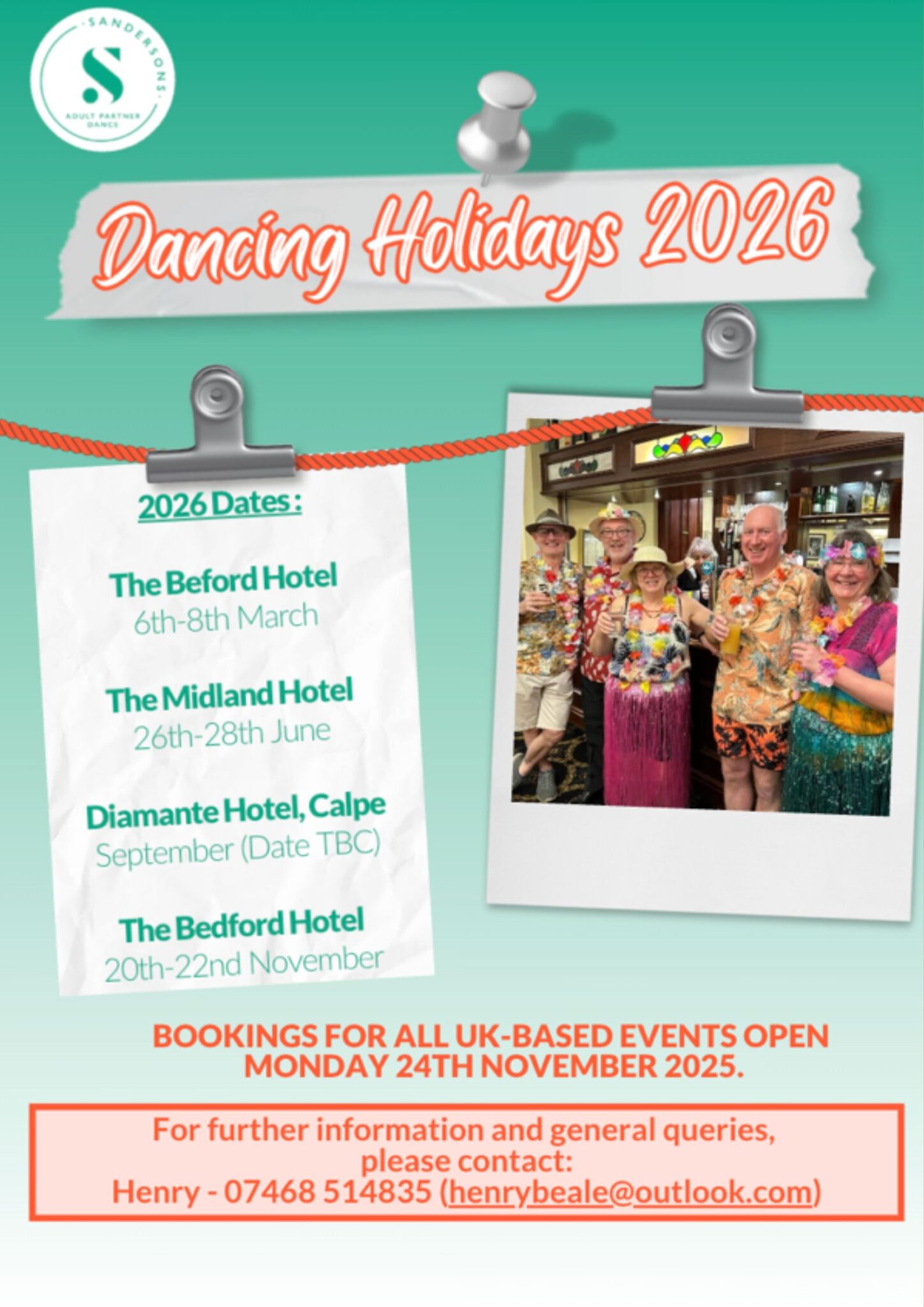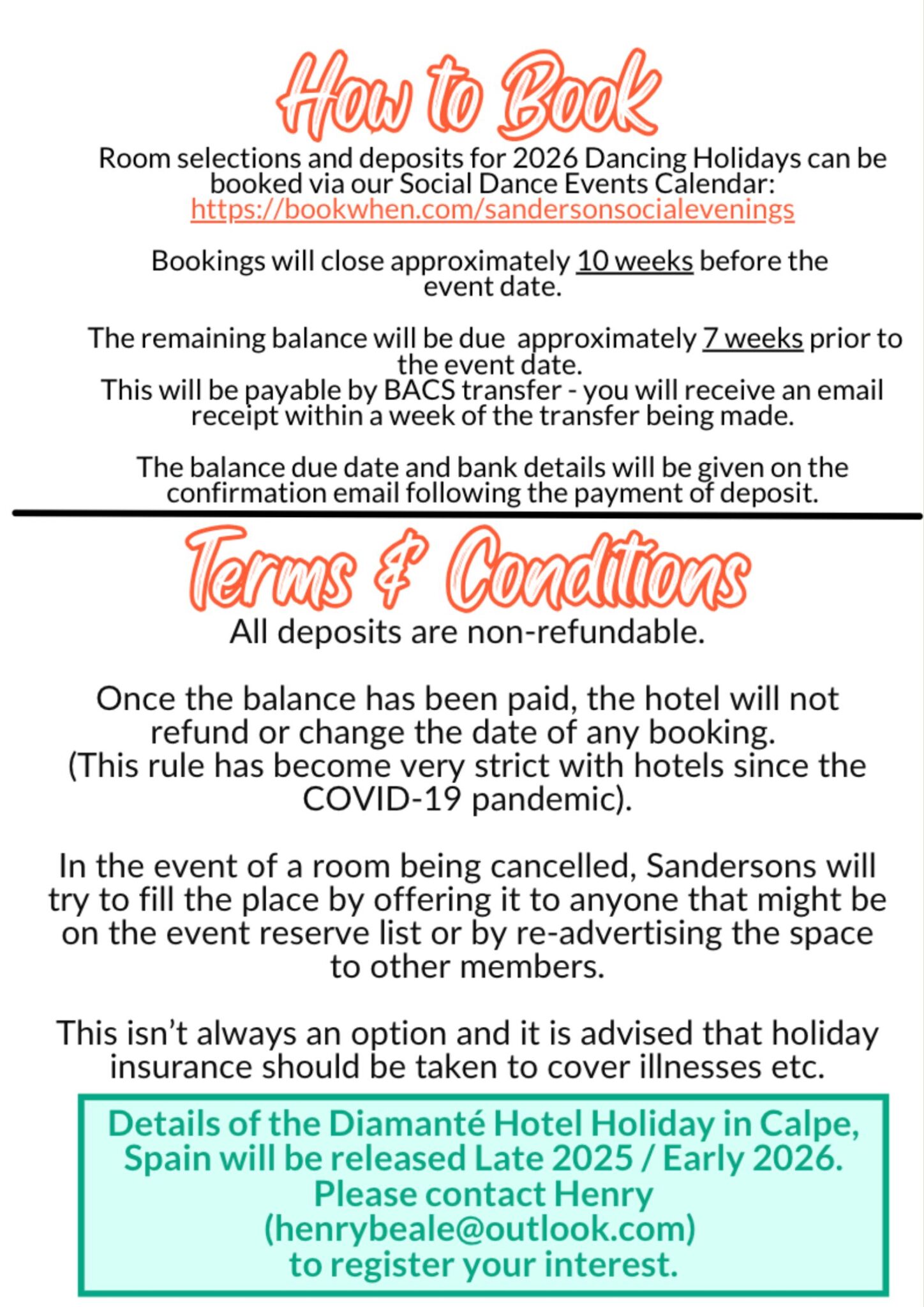 Rooms/Deposits are bookable on our social dance events calendar